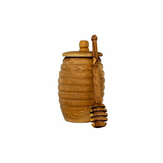 SCENTS & FEEL OLIVE WOOD HONEY/MUSTARD JAR WITH DIPPER