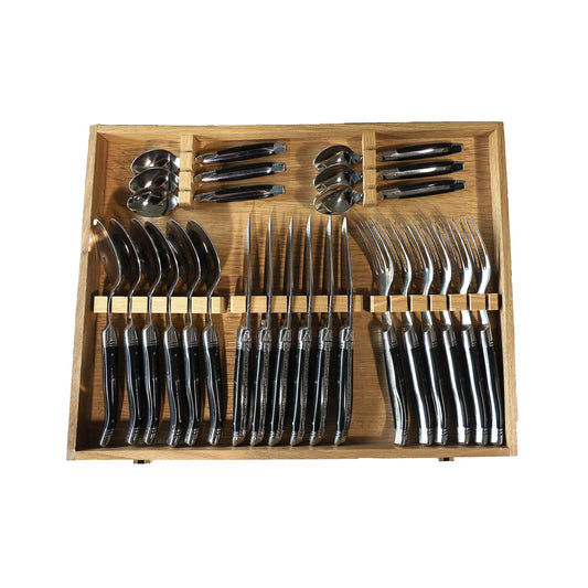 GOYON CHAZEAU® 24 PIECE LAGUIOLE PRESTIGE BLACK CATTLE HORN FLATWARE SET