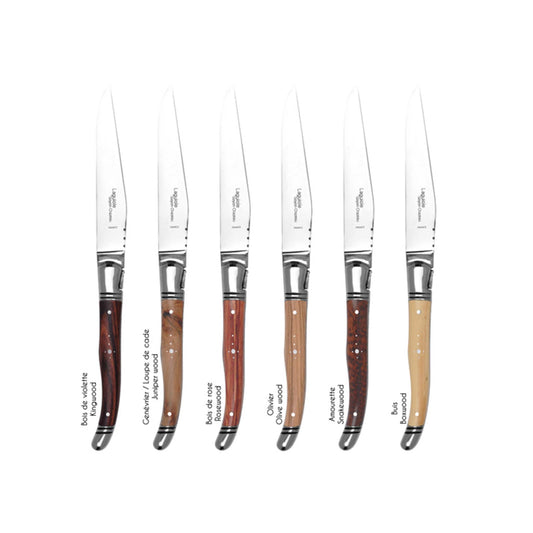 GOYON CHAZEAU 6 LAGUIOLE PRESTIGE STEAK KNIVES IN MARBLE WOOD