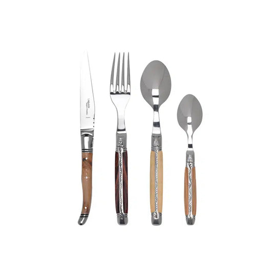 GOYON CHAZEAU 24 PIECE LAGUIOLE PRESTIGE MIXED WOOD FLATWARE SET