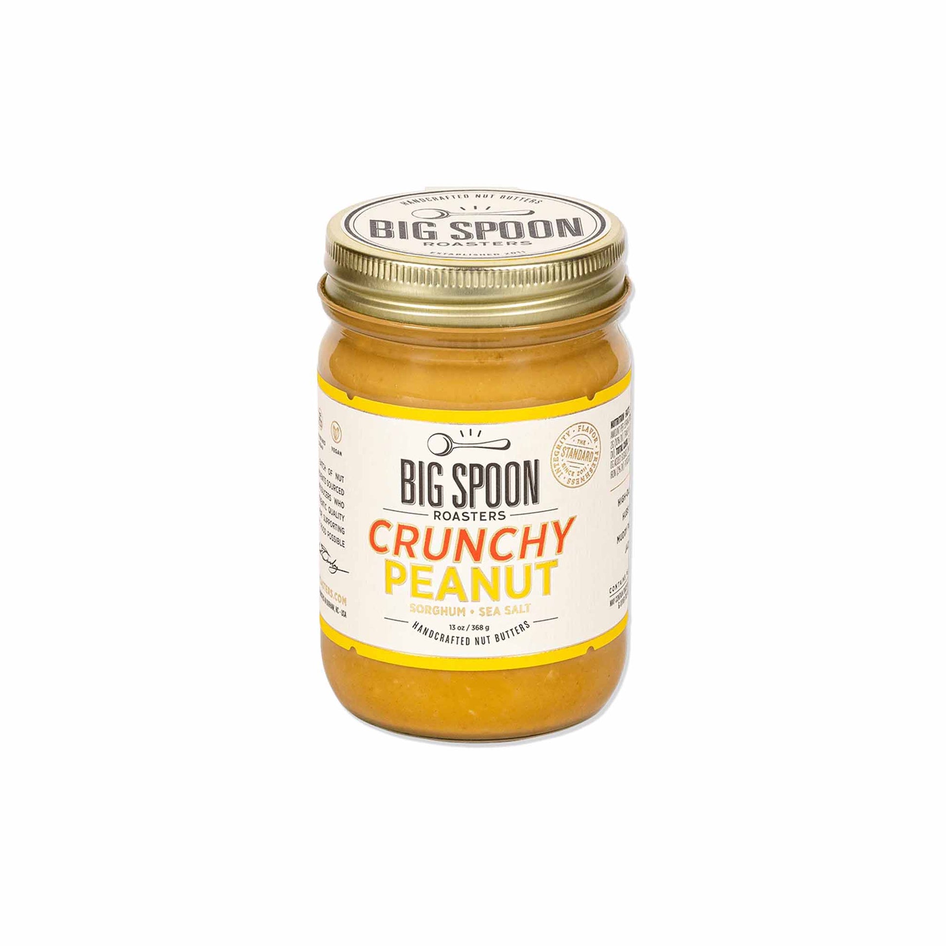 Get ready to experience the crunchiest and most addictive peanut butter ever! Our Big Spoon Roasters Crunchy Peanut Butter combines the crunch of Virginia-variety peanuts with the smoothness of High Oleic Cordoban Runner peanuts. The touch of fresh sorghum syrup and Jacobsen sea salt make it irresistible.