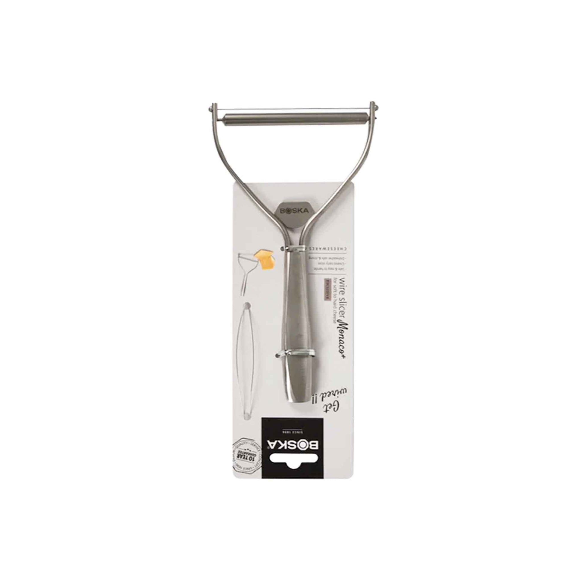 Designed for young and soft cheeses, this cheese slicer offers safe slicing with its cutting wire and adjustable thickness options. Made with high-quality stainless steel, it's a must-have for cheese lovers who value safety and precision. Experience the ultimate in convenience and elegance with the Monaco+.