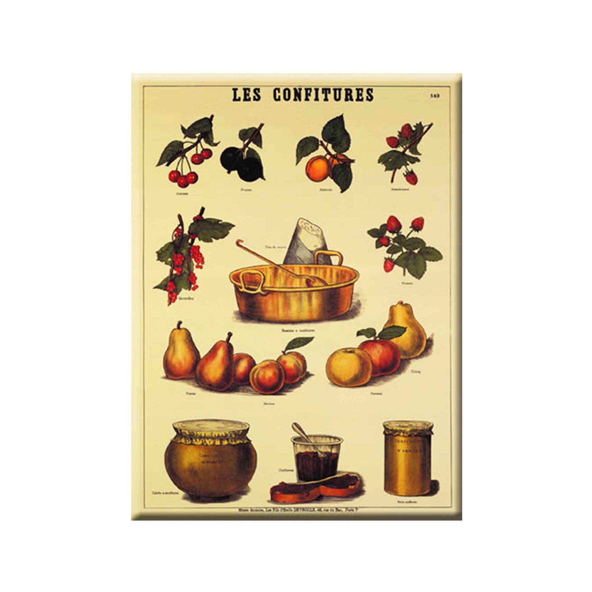 The Cartexpo Les Confitures poster captures the delightful process of making traditional French jams, illustrated in a whimsical, step-by-step format. Crafted from sturdy metal and equipped with a built-in hook, it’s both an educational piece and a charming decoration for kitchens, pantries, or breakfast nooks.