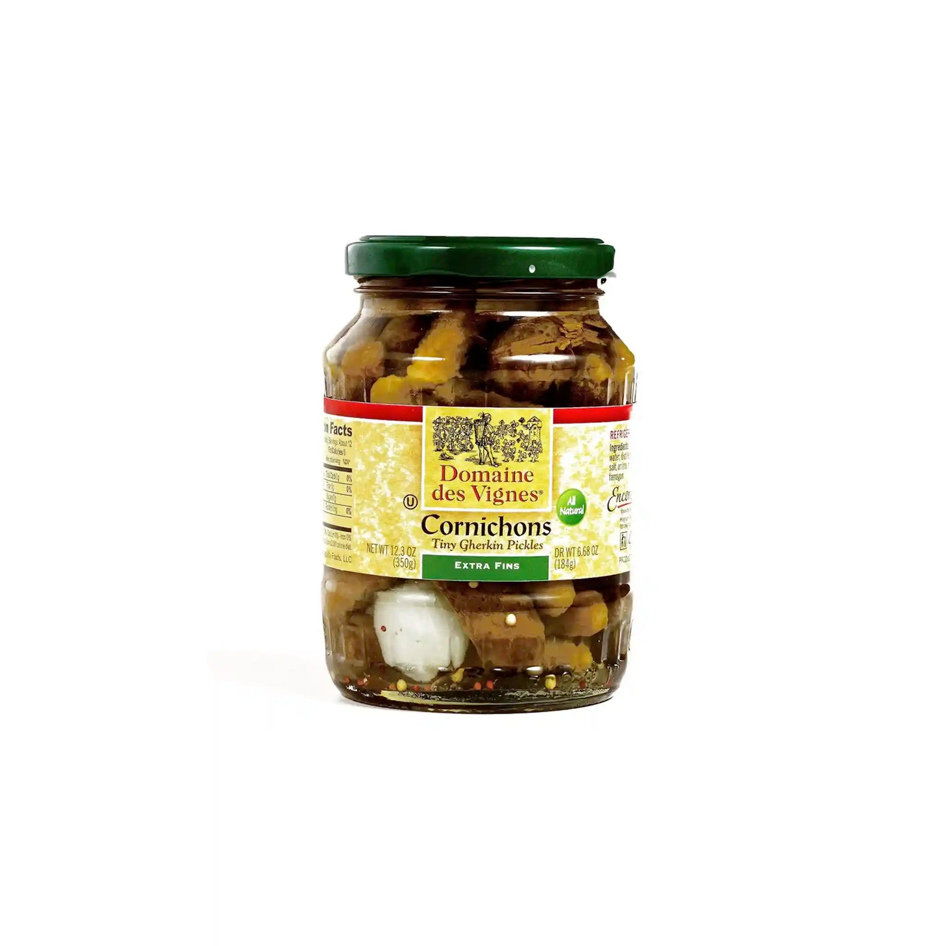Domaine de Vignes Cornichons 350g are extra-fine, pinkie-sized gherkins that deliver classic French-style flavor with a satisfying crunch. Ideal as a snack, a topping for salads or sandwiches, or an ingredient in sauces, they bring a bright, tangy touch to any dish. Perfect on their own or paired with spicy mustard and cured meats for a charming charcuterie experience.