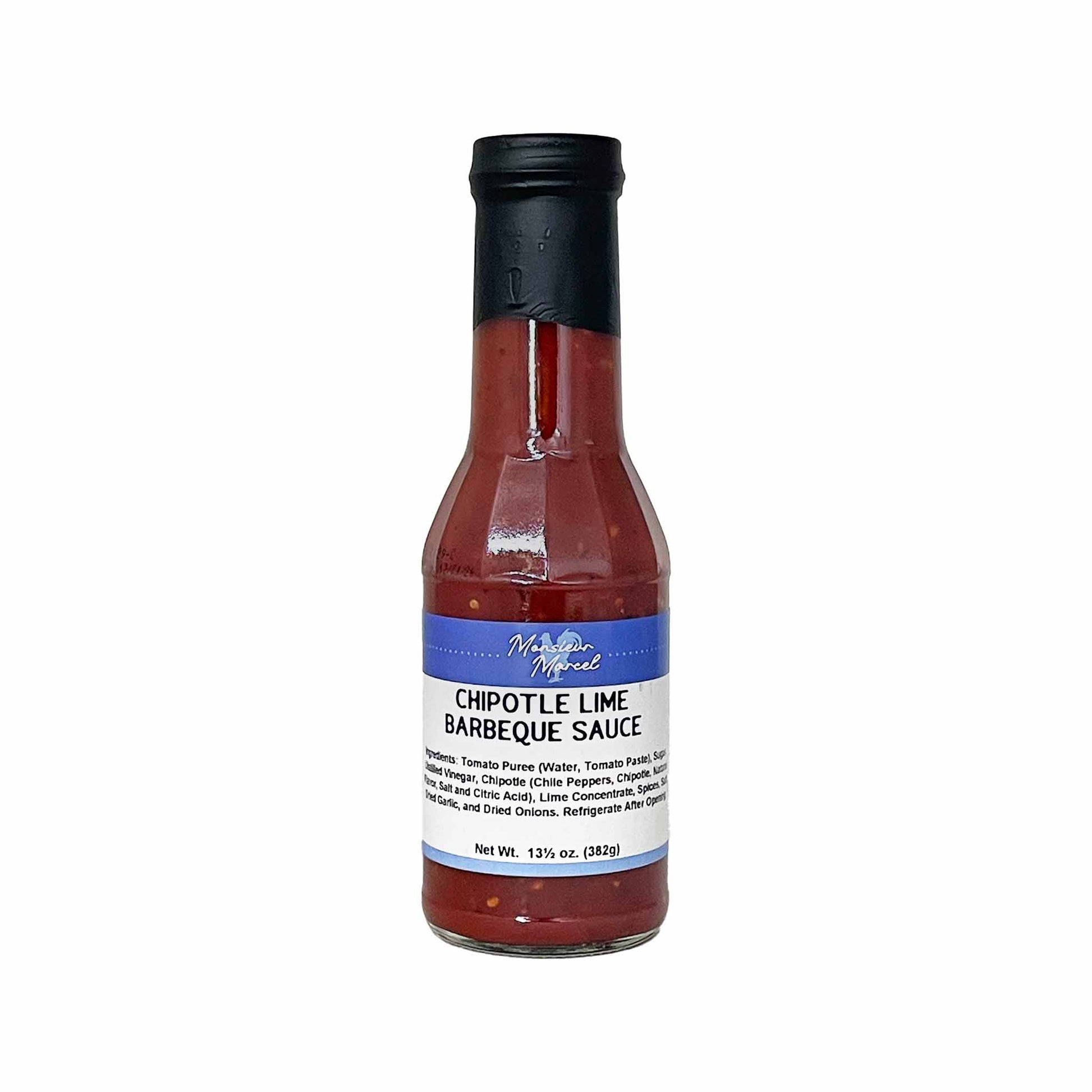 Monsieur Marcel Chipotle Lime BBQ sauce is seasoned with smoked chipotle peppers and flavored with a splash of lime. This sauce is amazing and works well on any meat or vegetable dish.