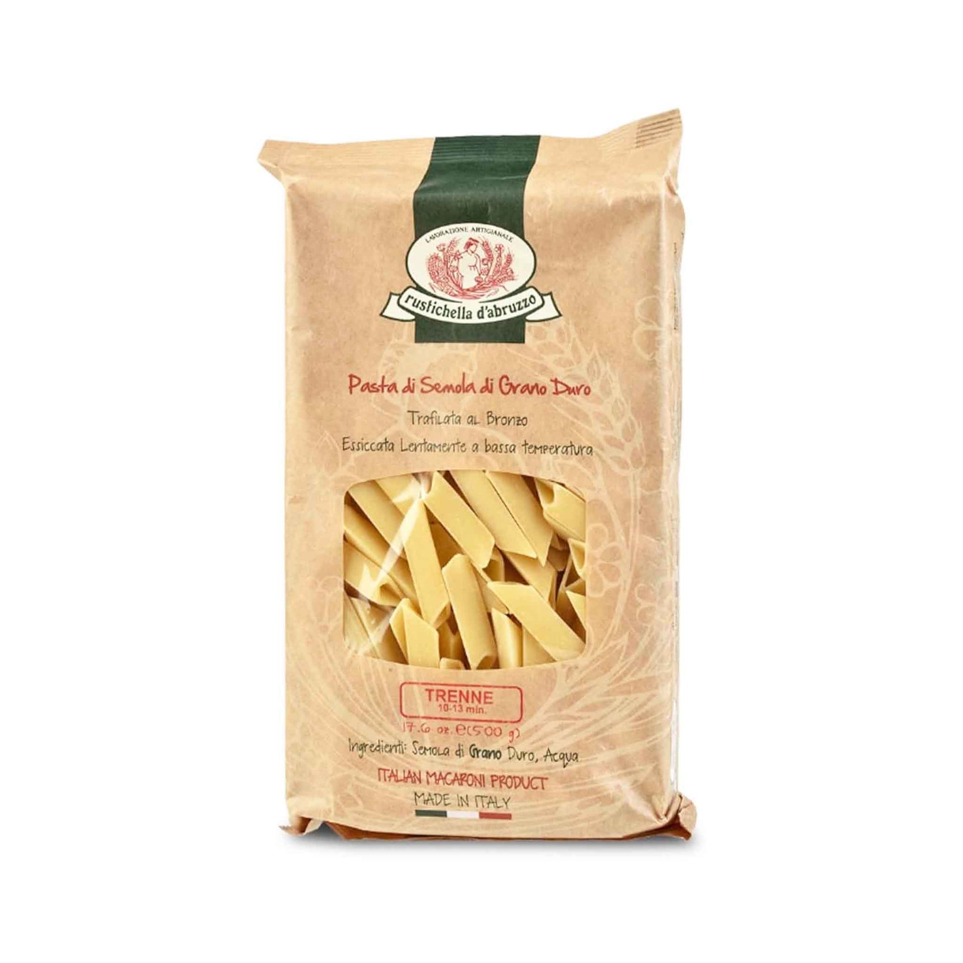 Discover the fun and futuristic Trenne pasta from Rustichella d'Abruzzo! With its unique triangular and penne-inspired shape, it's perfect for stacking on a plate. Use it for any penne-inspired recipe, or bake it for a crispy twist. Olive oil-based sauces are the perfect complement to this playful and versatile pasta.